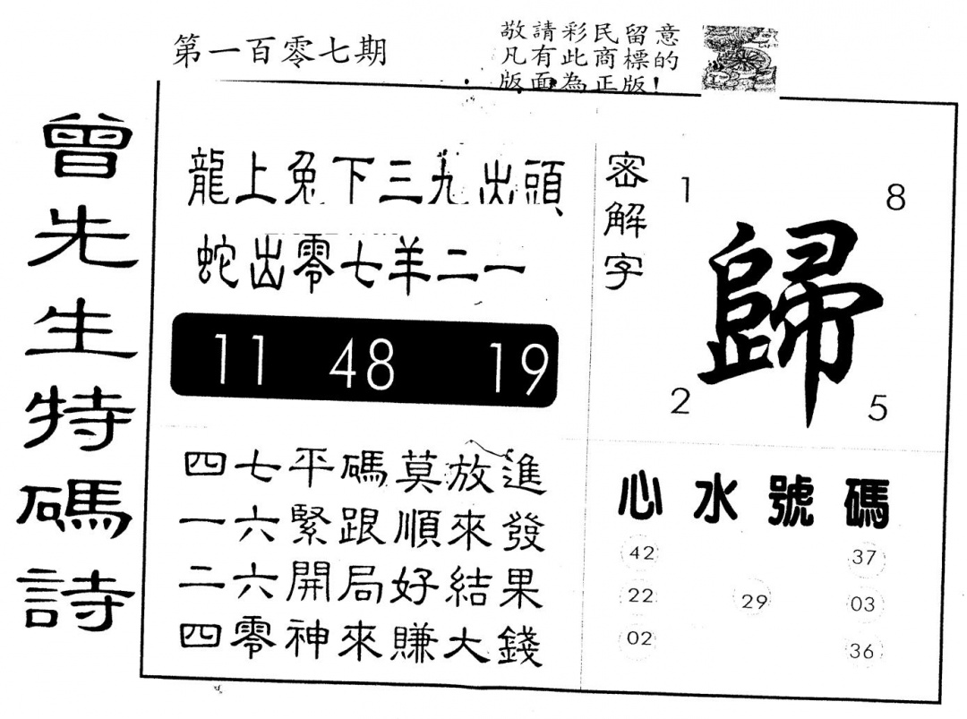 另版曾道人特码诗